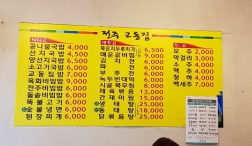 교동집 메뉴판입니다.