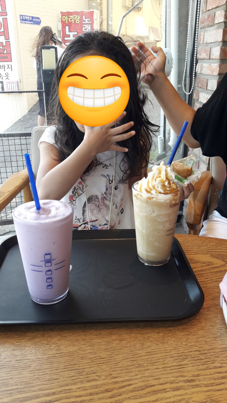 해수욕장 근처에 있는 이디야커피에서 커피와 음료수를 시켜 먹으면서 쉬었습니다.