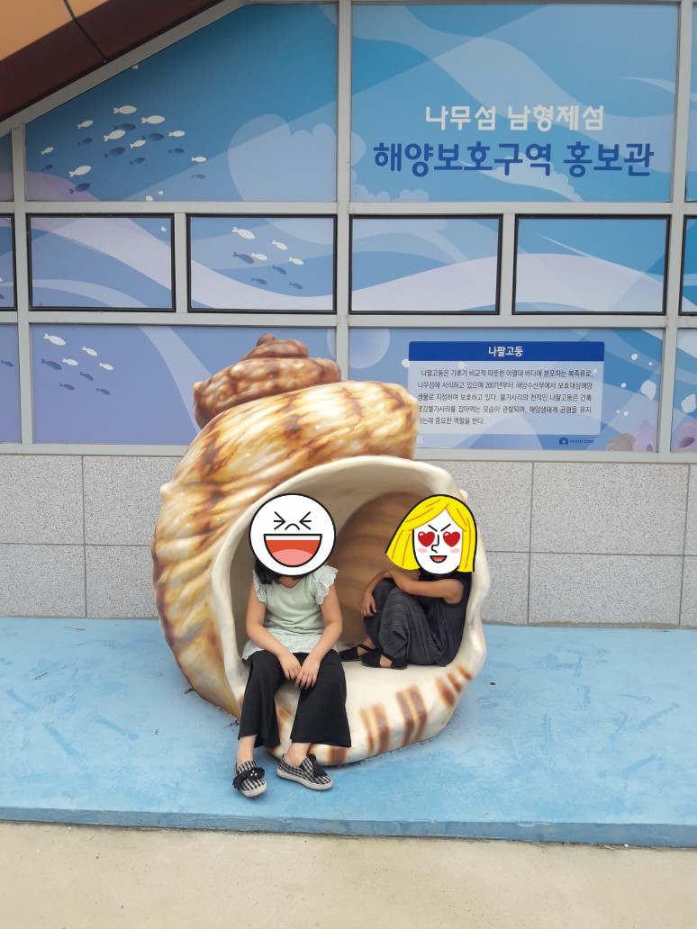 소라 껍데기에 앉아서 기념사진 찰깍!