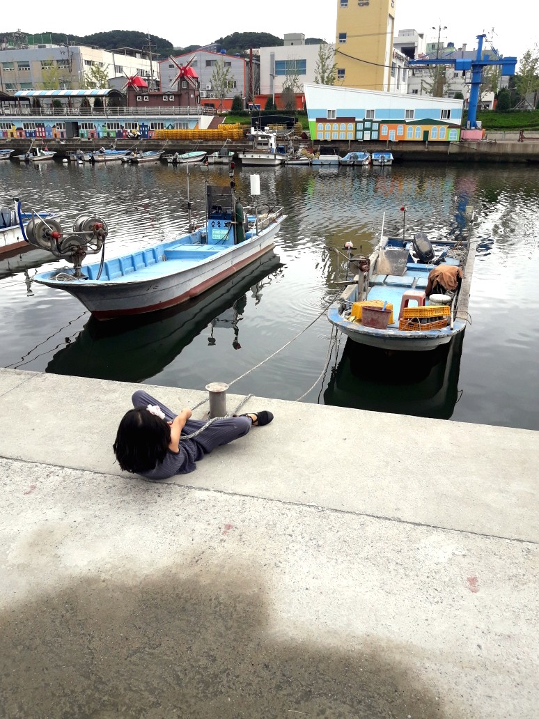 배를 끌어보겠다고 열심히 온몸으로 줄을 잡아당기는 우리 딸! ㅎㅎ