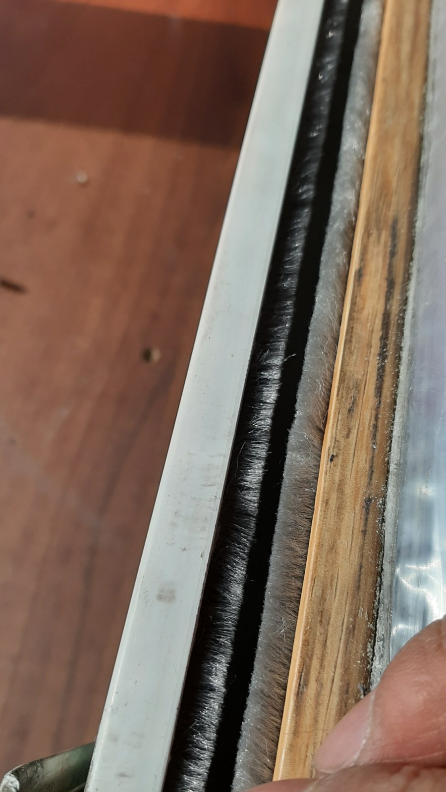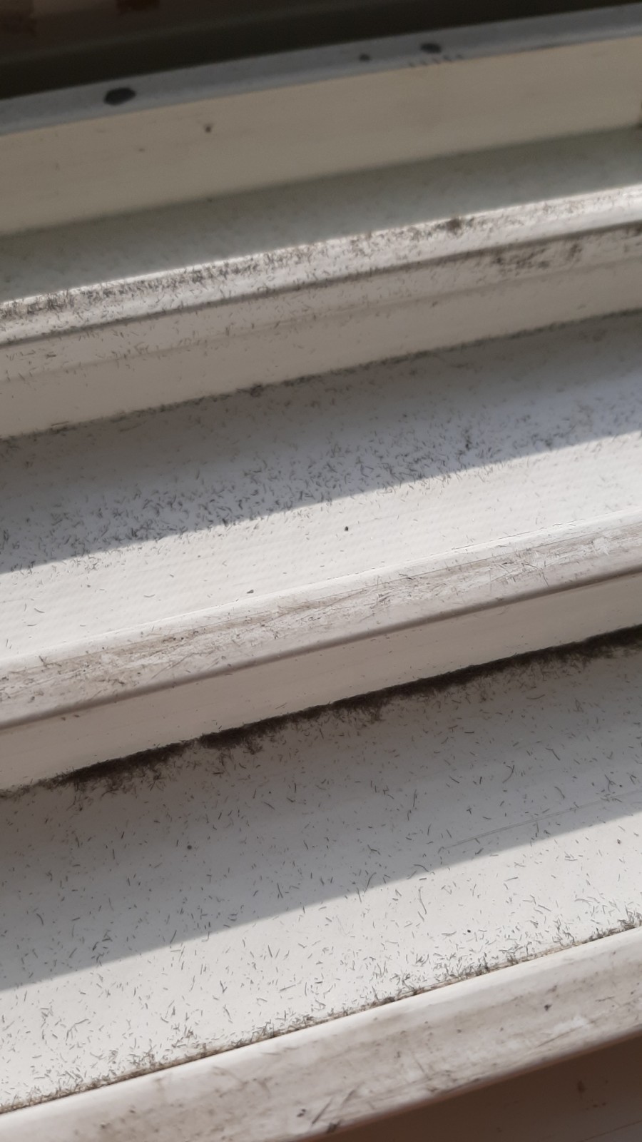 창틀에 붙어있는 모헤어(샷시털)의 잔해라는 걸 알게 되었습니다.