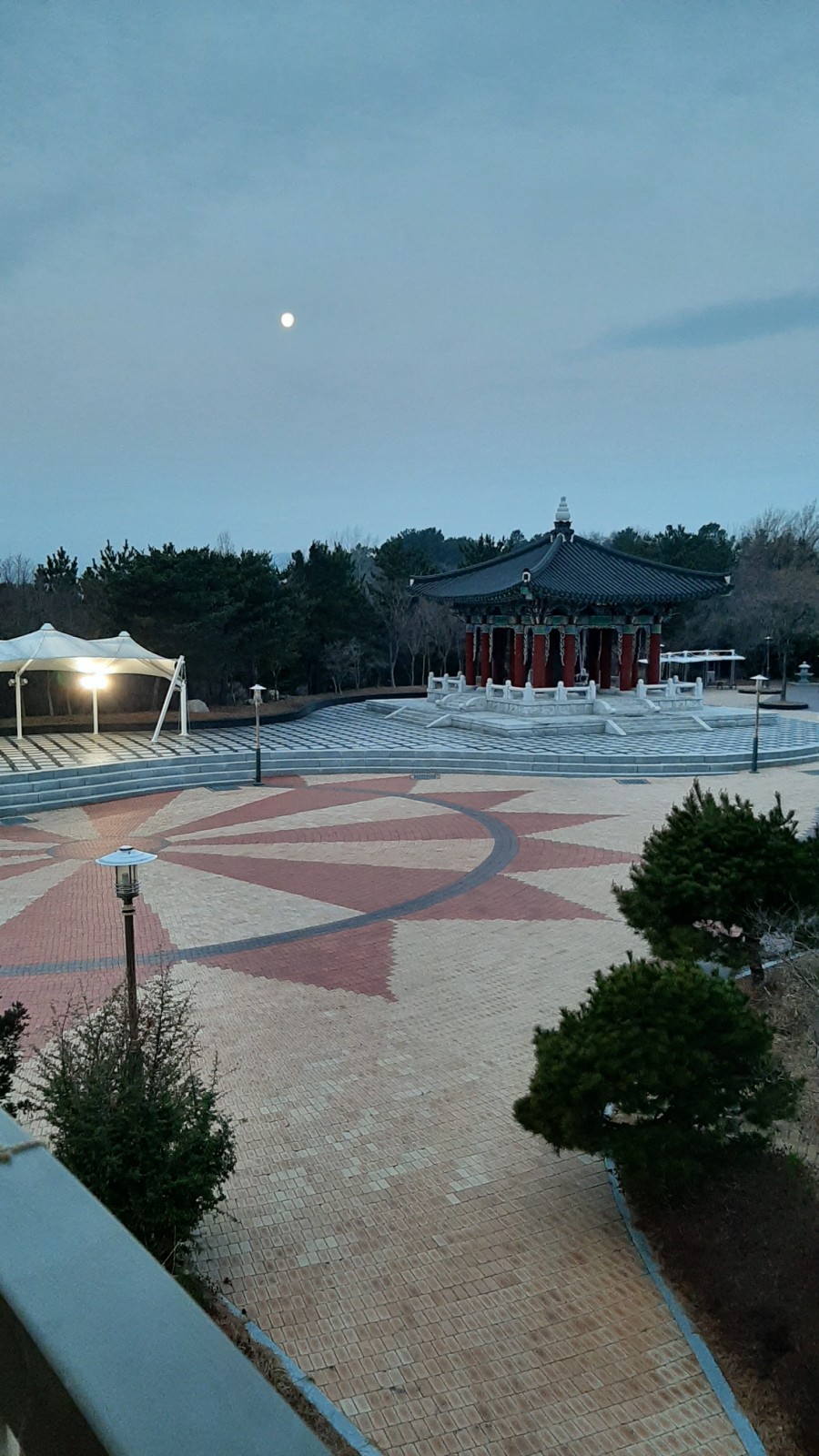 망양정 입구 주차장에 도착했을 때 아직 달도 떠있었습니다.ㅎㅎ