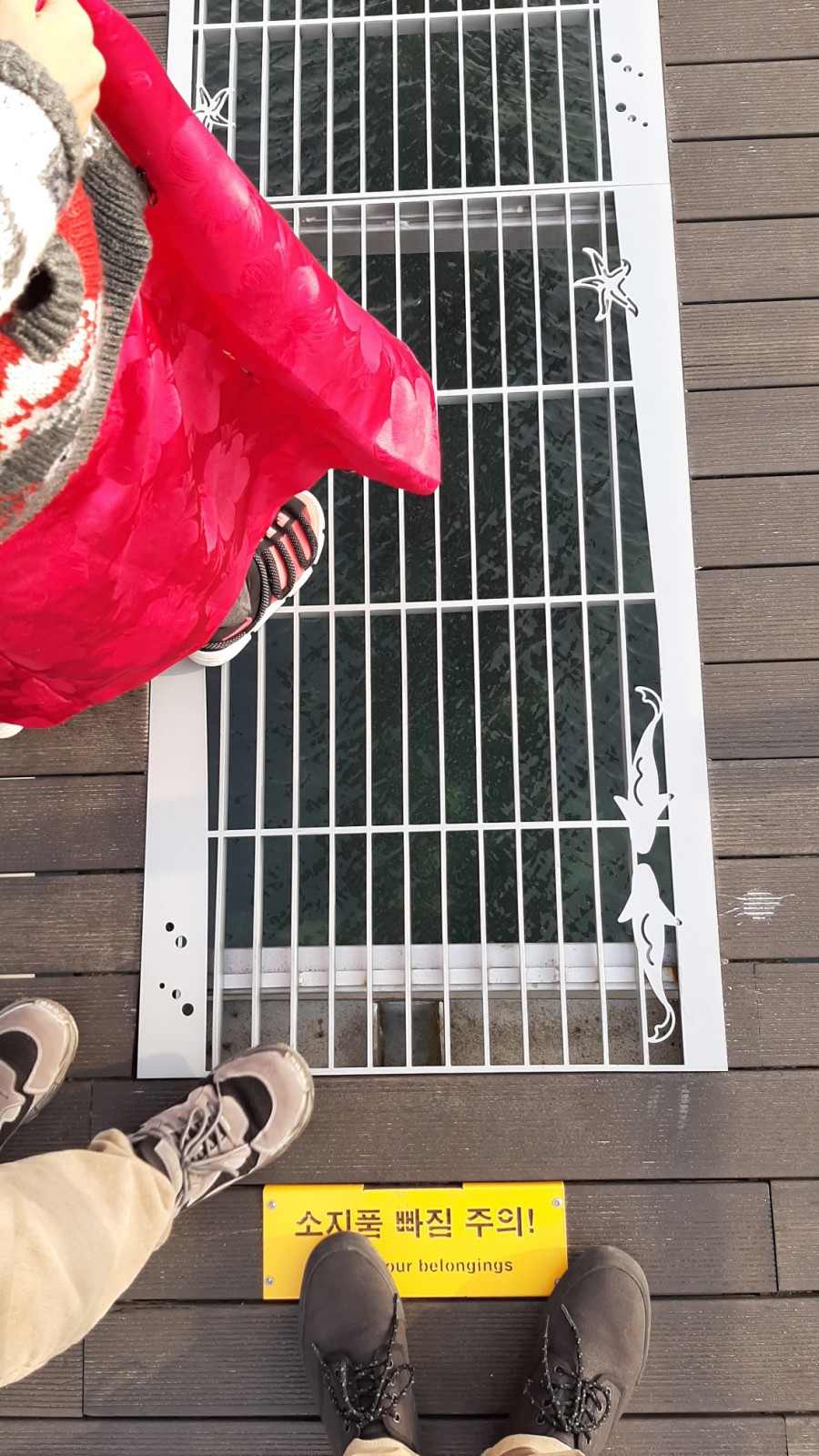 중간중간에 사진처럼 바다를 볼 수 있도록 바닥이 뚫려있는 곳이 있어요.