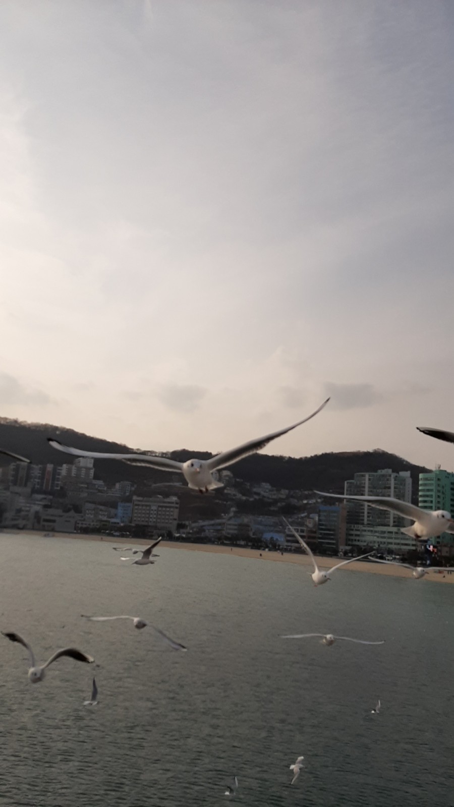 다른 곳에 사는 갈매기들에 비해 부산갈매기들은 예쁘게 생겼습니다.ㅎ