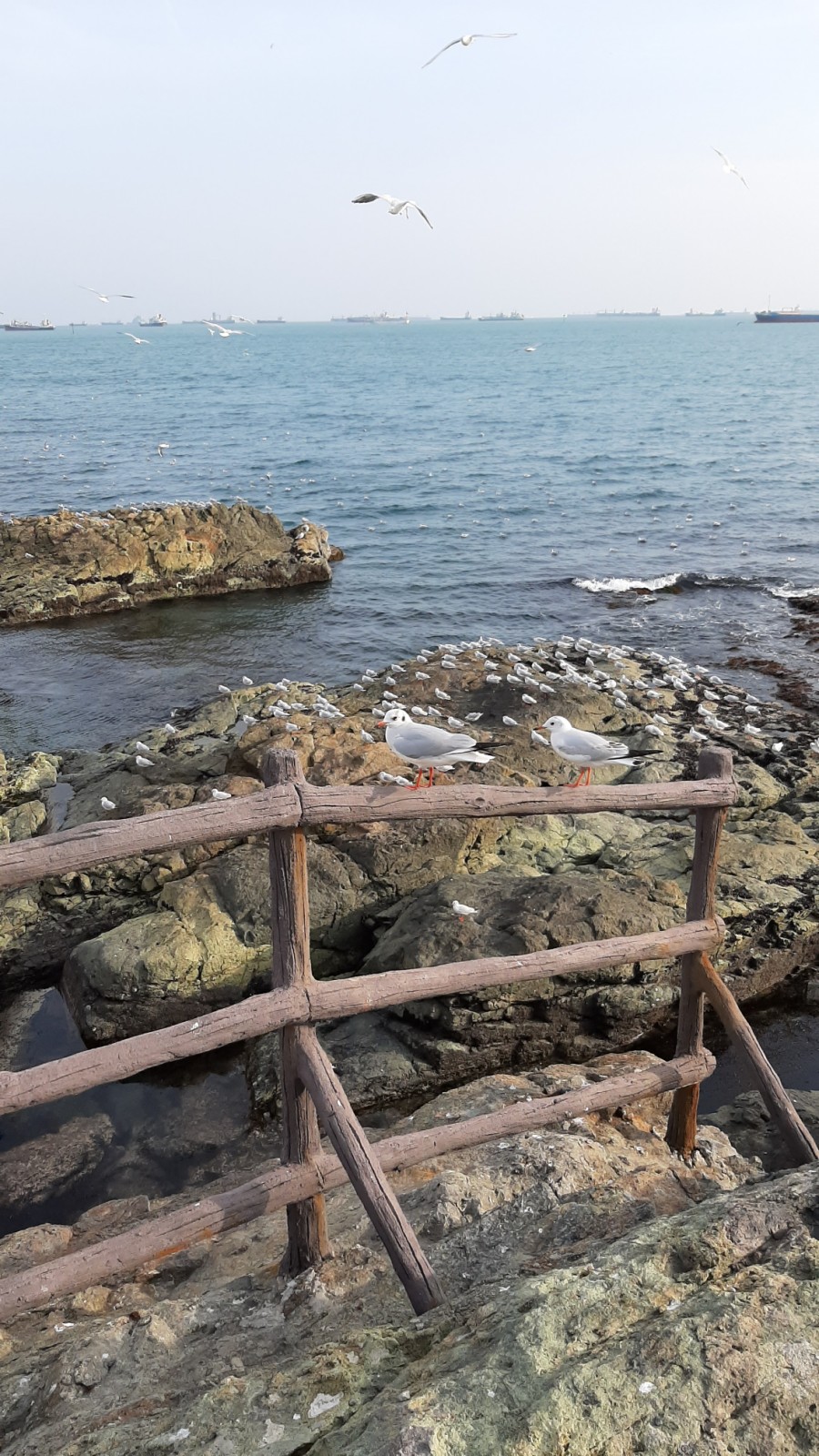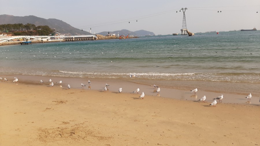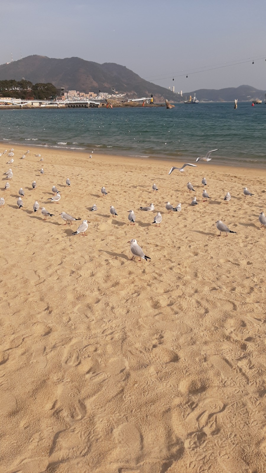 송도해소욕장에 몇 번이나 와봤지만 이렇게 갈매기들이 많은 건 처음입니다.