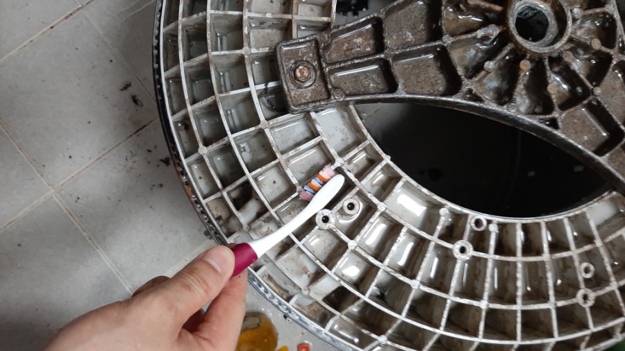 이제 틈새를 칫솔이나 작은 솔로 청소를 해줍니다.