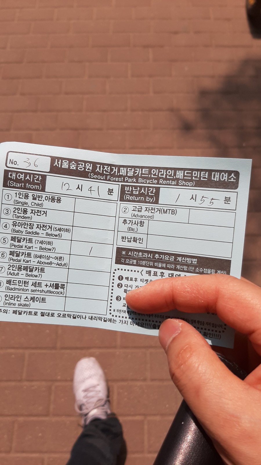 매표소에서 대여요금을 결제하고 나면