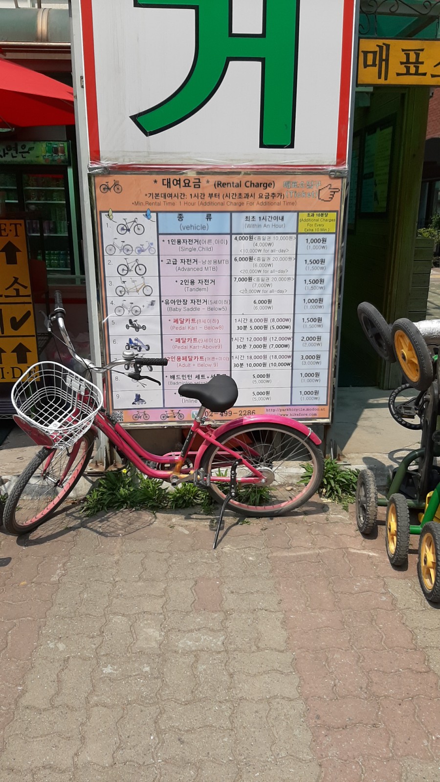 자전거 대여요금, 가격표는 시진에 나와있는 것처럼 되어있고요.