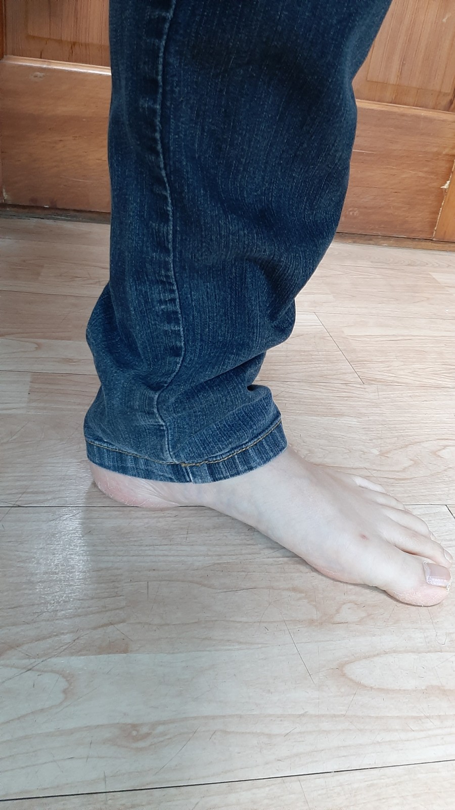 청바지 밑단 살리고 기장 줄이기 작업을 완료하고 나서 입어보았어요.