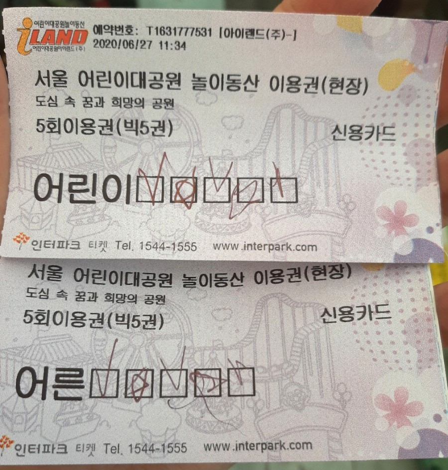 일단 매표소로 가서 5회 이용권을 아이 하나 어른 하나 끊었습니다.