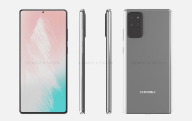 이미지를 보면 신제품 후면 카메라가 전작인 갤럭시노트10과 달리 튀어나온 직사각형 모듈 위에 배치됐었습니다.