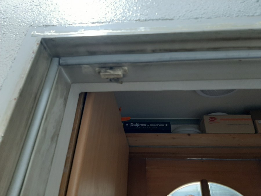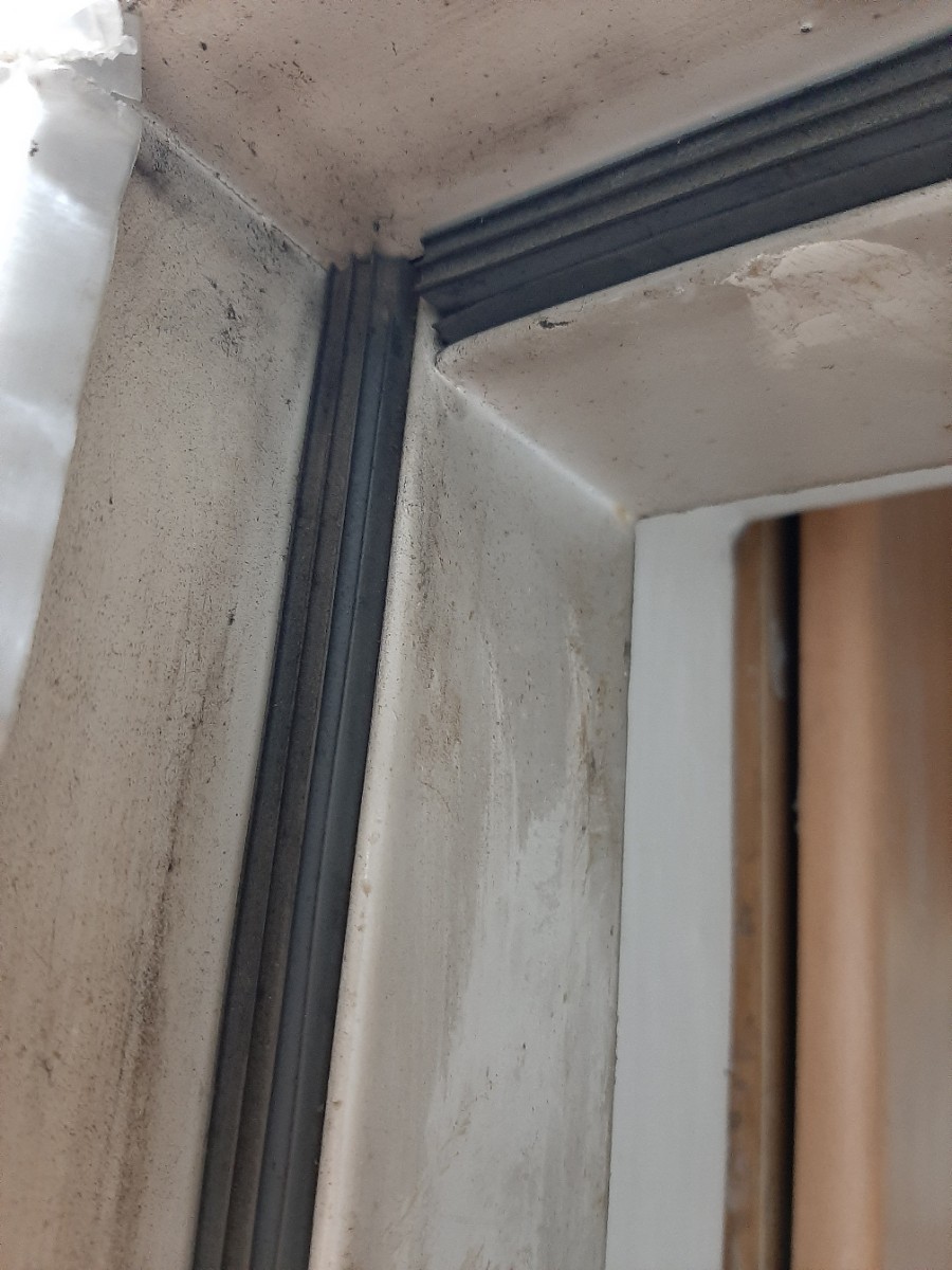 현관문틀 위쪽에도 기존에 설치되고 있던 고무패킹을 제거해 줍니다.