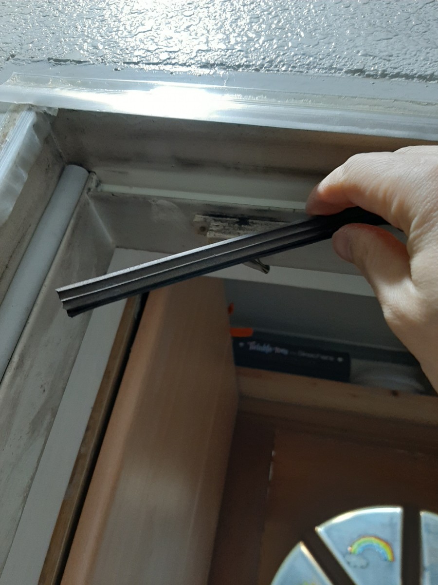 현관문 위쪽에도 새로 구매한 고무패킹을 홈에 끼워줍니다.