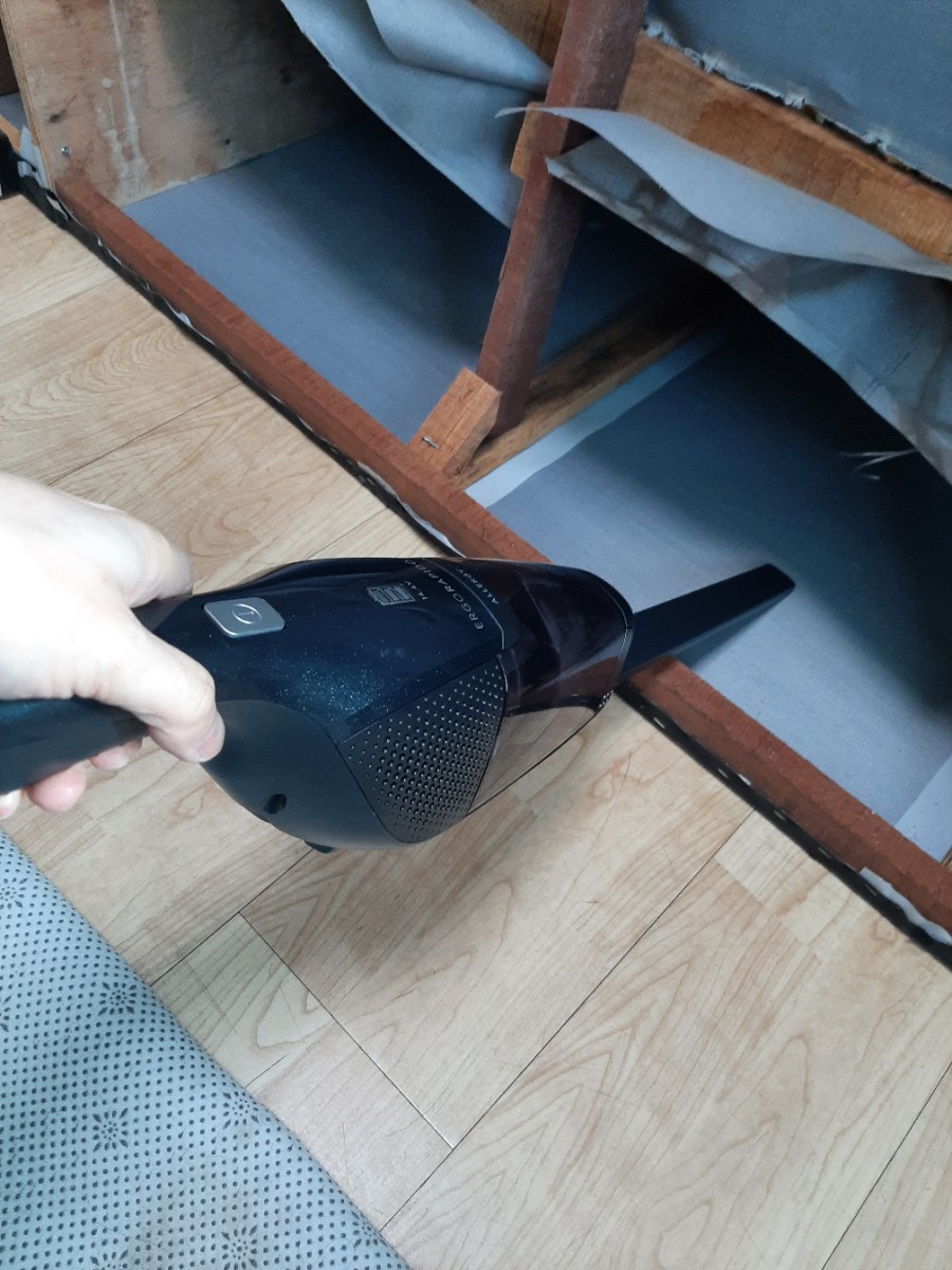 소파 안쪽에 보시면 먼지나 나무 가루 같은 것들이 있을 수 있으니