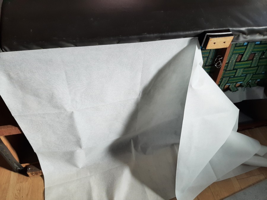 밴드 작업이 끝났으니 이제 소파 아래쪽 부직포를 다시 덮어줍니다.