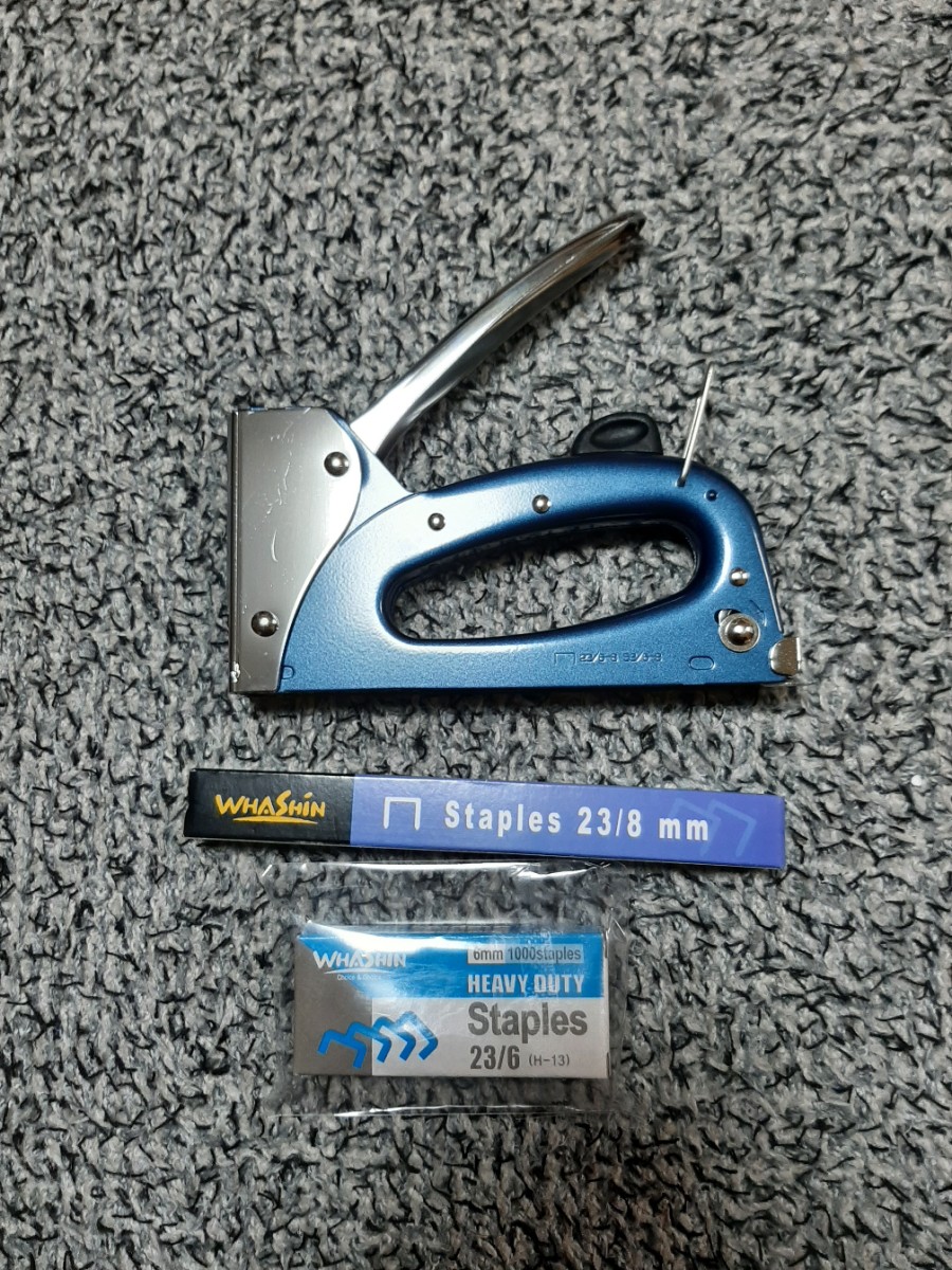 나무에 스테이플러(호치키스) 침을 박을 때 쓰이는 공구입니다.