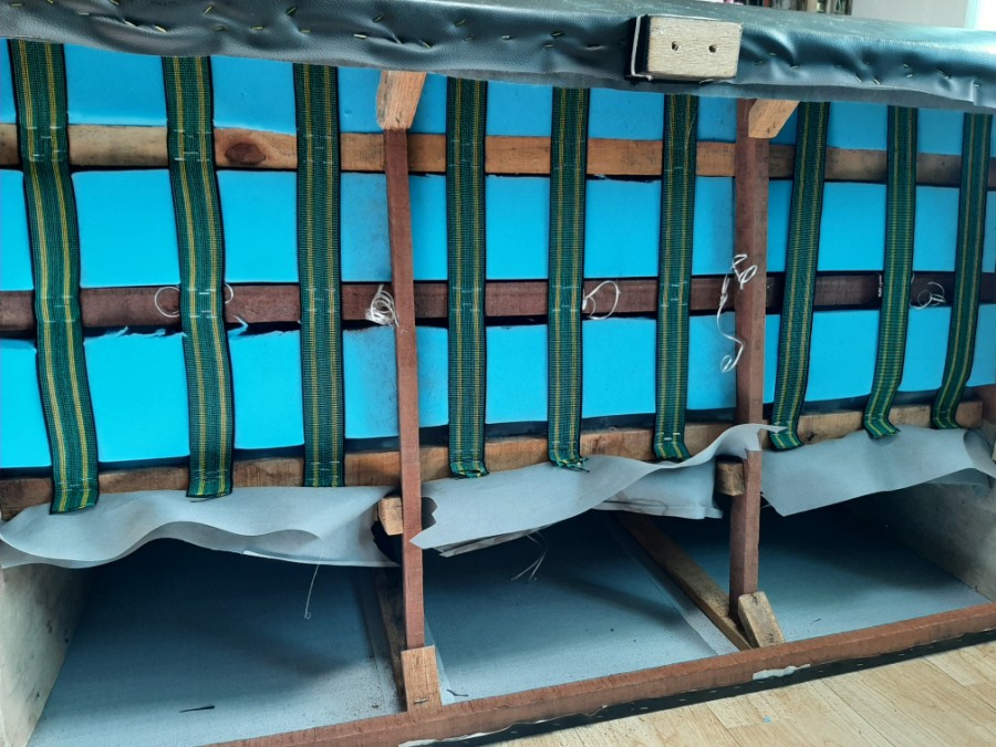 소파 꺼짐 보강 고무 밴드 작업이 다 되었습니다.