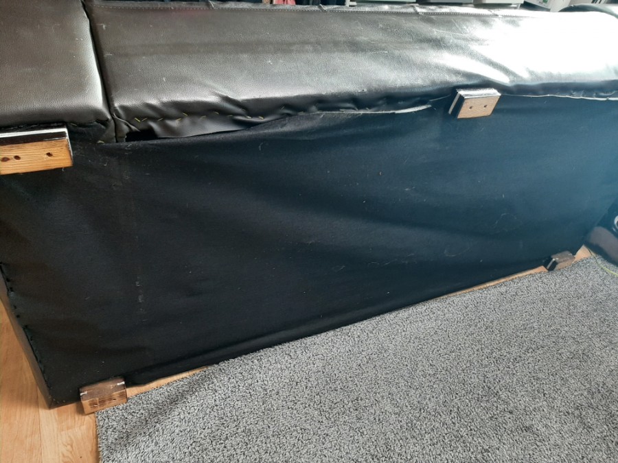 소파 바닥에 부착이 되었던 검은 부직포를 뜯어냅니다.
