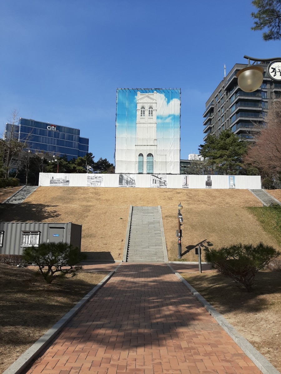 정동공원 안쪽에 보시면 구 러시아 공사관이 보이는데 보수 공사 중이었습니다.