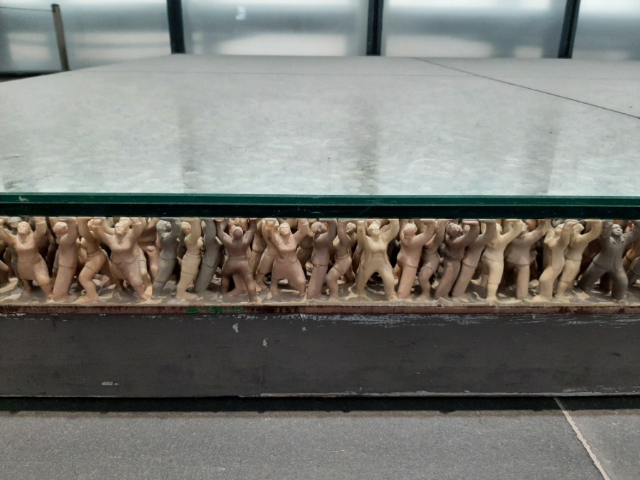 유리판을 들어 올리고 있는 작품이었습니다.