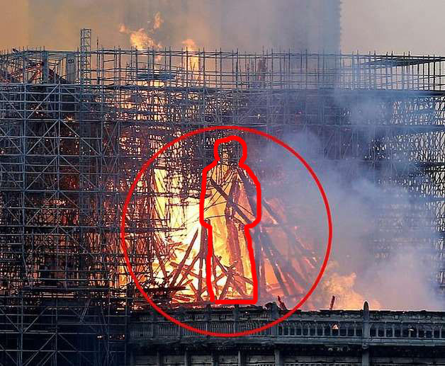 17일 데일리메일에 따르면 영국 스코트랜드 웨스트 던바톤셔에 사는 레슬리 로완은 노트르담 대성당 화재를 찍은 사진을 보는 순간 한 뚜렷한 형체를 발견했다.