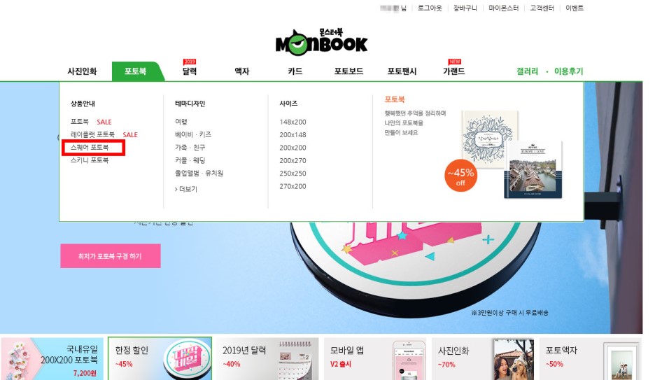 몬스터북 홈페이지 포토북 메뉴에서