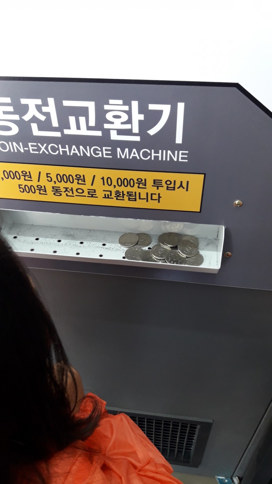 1000원/5000원/10000원 지폐를 넣으면 500원짜리로 다 교환돼서 나온다.