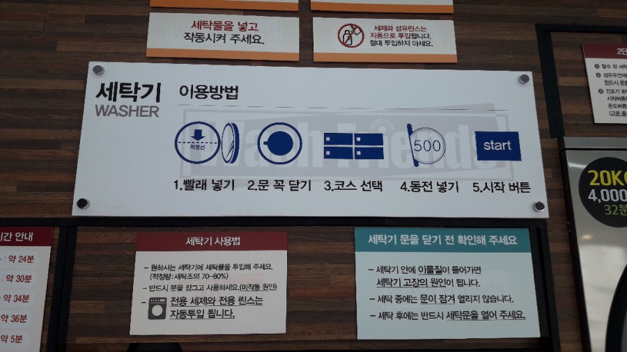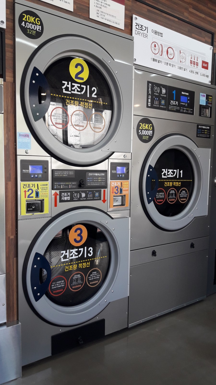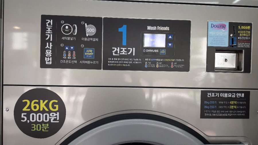 빨래 기계, 건조기는 전부 500원짜리로만 넣을 수 있게 되어 있어서