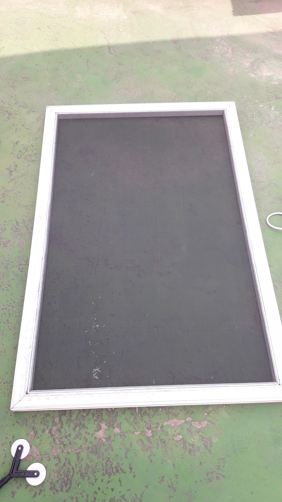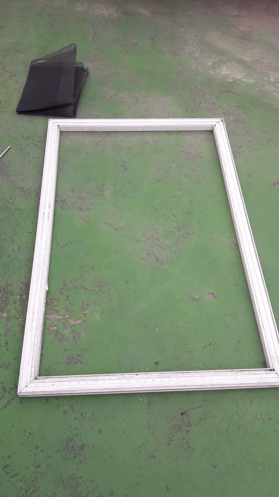 옥상 바닥에 오래된 방충망샷시를 눕히고