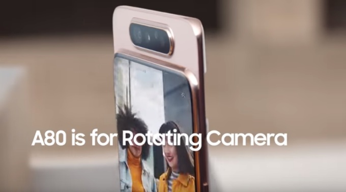 앞서 지난 4월 공개된 갤럭시 A80은 현재까지 발표된 갤럭시 A 제품군 중 가장 상위모델로 최초로 회전 카메라를 탑재한 것이 특징이다. 셀카 모드로 전환 시 회전 카메라의 후면 상단이 위로 올라가면서 카메라 방향이 바뀌어 후면 카메라와 같이 4,800만 화소에 3D 심도 촬영, 800만 초광각 촬영이 가능하다.