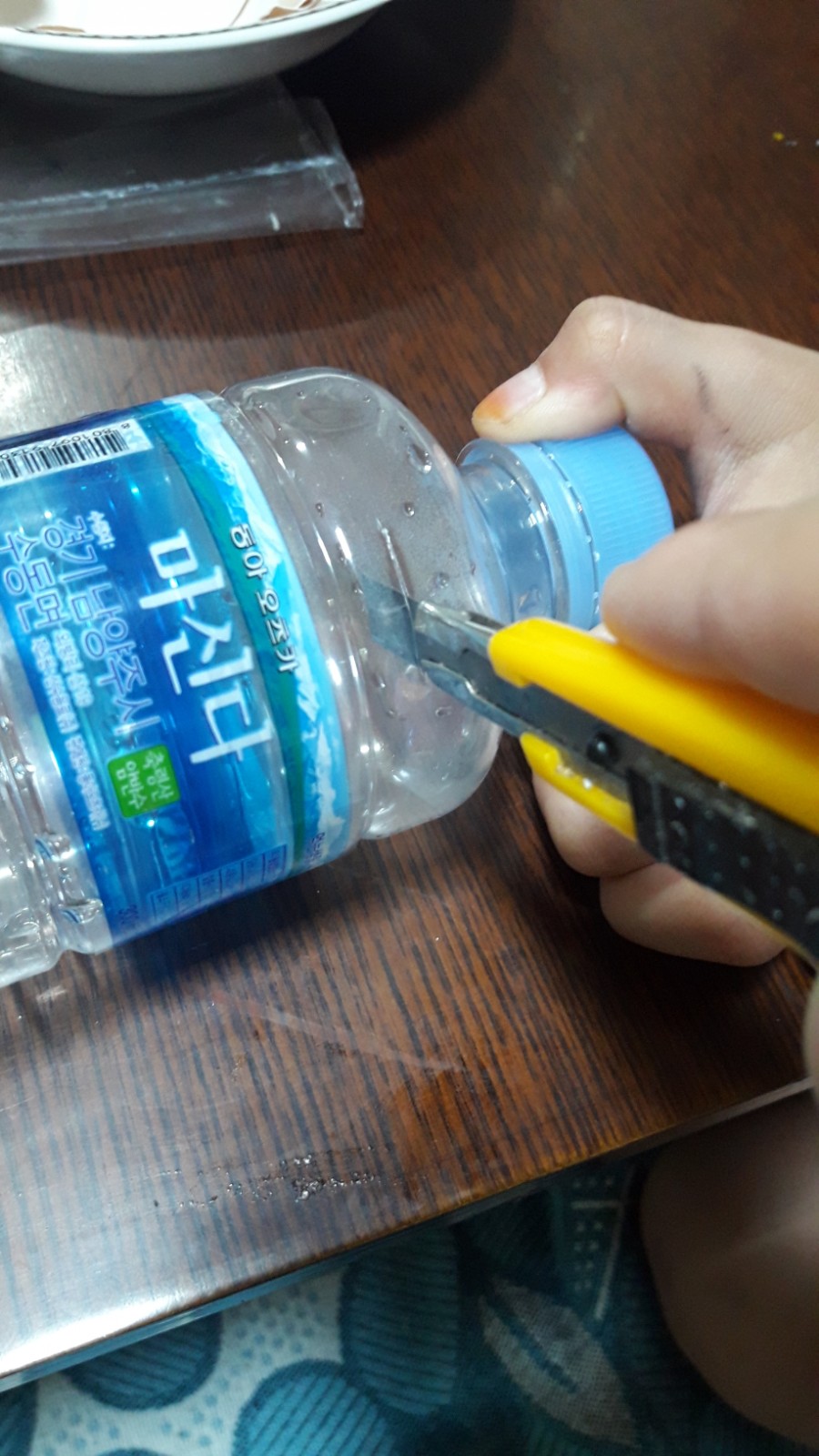 페트병 윗부분을 칼로 잘라줍니다.