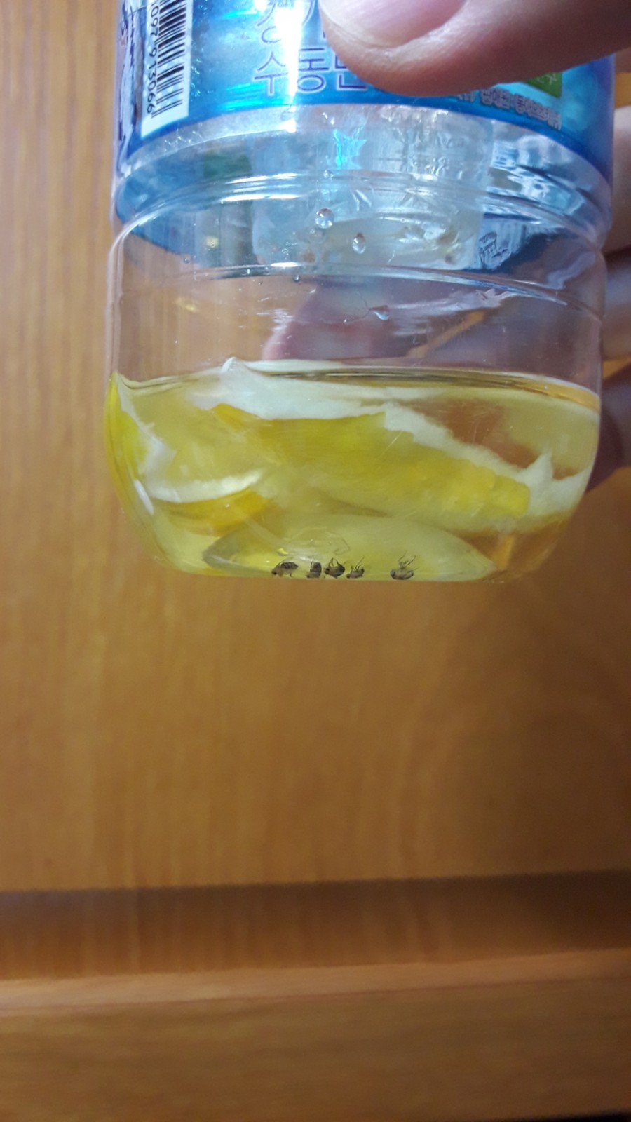 주방 세제를 넣는 이유는 세제가 날파리 다리에 달라붙어서 아래로 쭈욱 빠지게 한다네요.