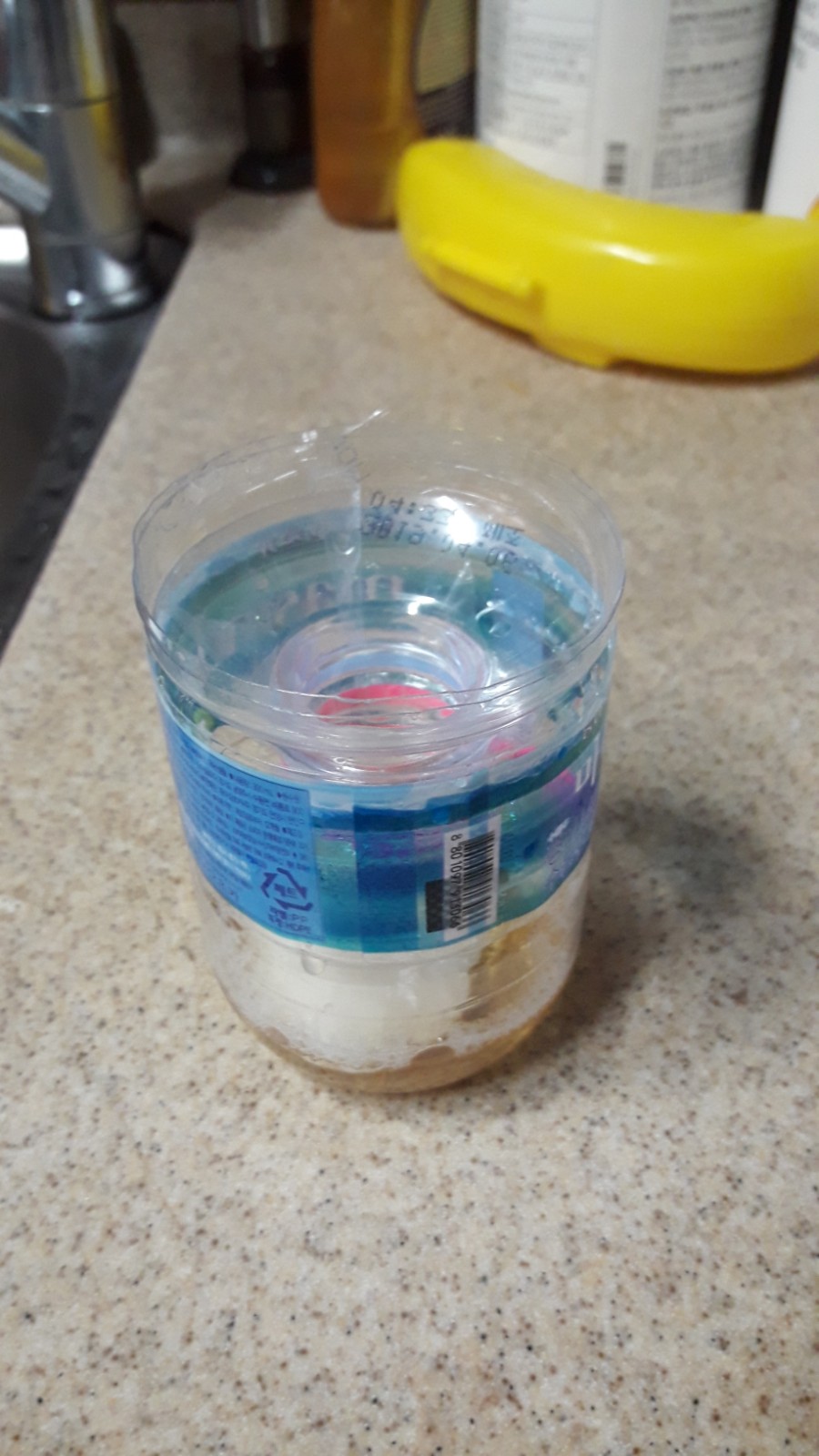 다 완성이 된 날파리 트랩을 싱크대나 초파리들이 모일만한 곳에 놔두시면 됩니다.