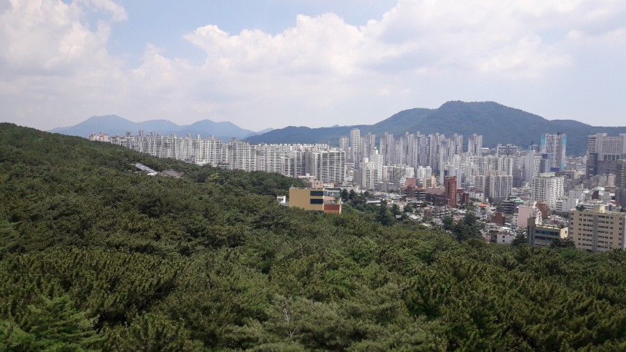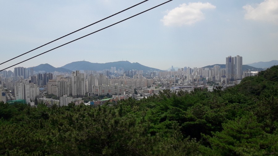 부산 경치를 보면서 천천히 산 위로 올라갑니다.