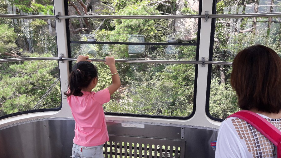 케이블카를 타고 올라가다 보면 창문과 바람구멍으로 시원한 바람과 맑은 공기가 들어옵니다.