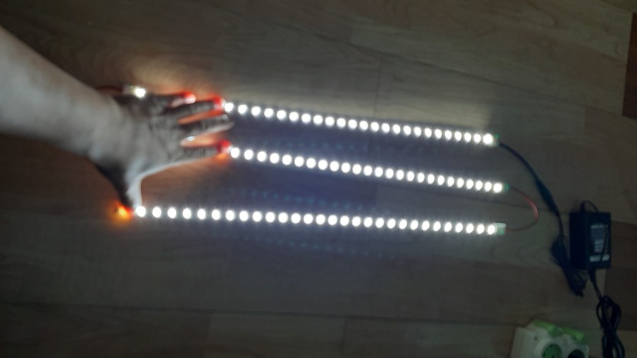 3개의 LED모듈과 2개의 클립 연결선으로 연결 완성된 모습입니다~