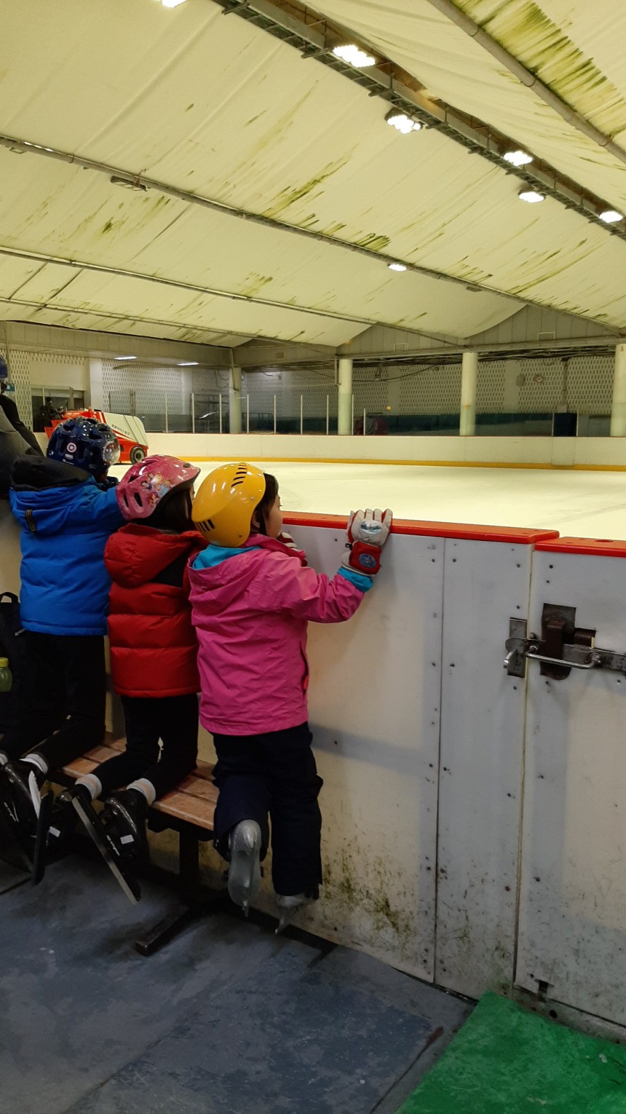 오랜만에 스케이트장에 가보니 스케이트를 타려는 아이들도 많았고