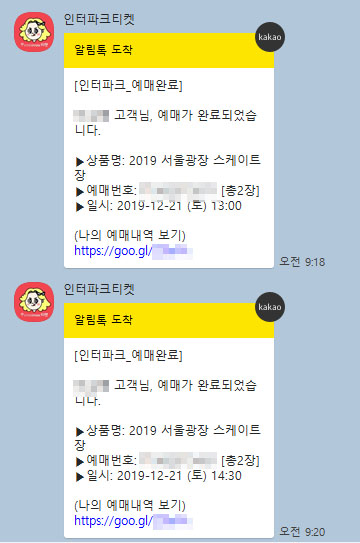 카톡으로도 예매 확인 문자가 오네요 ㅎ