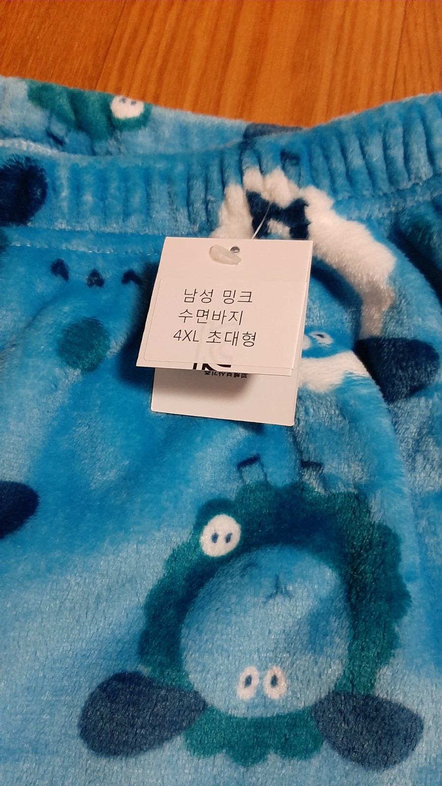 양무늬 수면바지 상품택에는 4XL 초대형 라고 찍혀 있습니다.