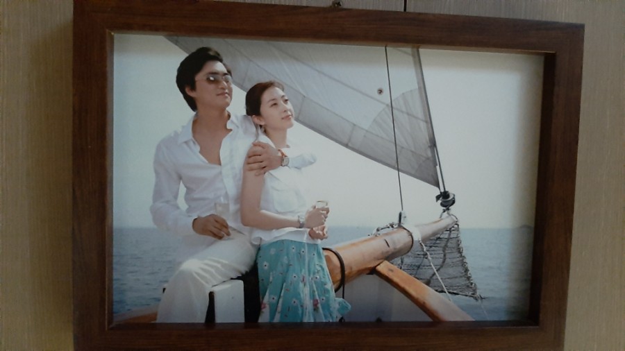 2층 올라가는 계단 중간쯤에 드라마 액자가 걸려 있네요.