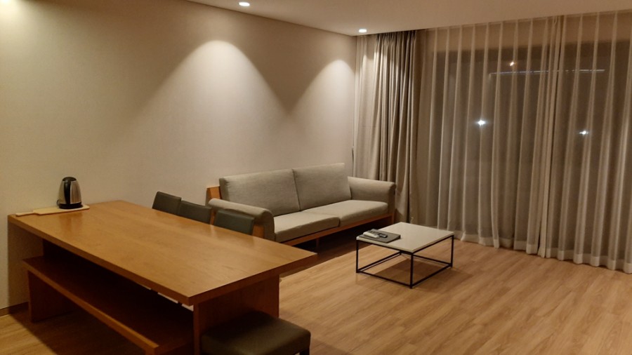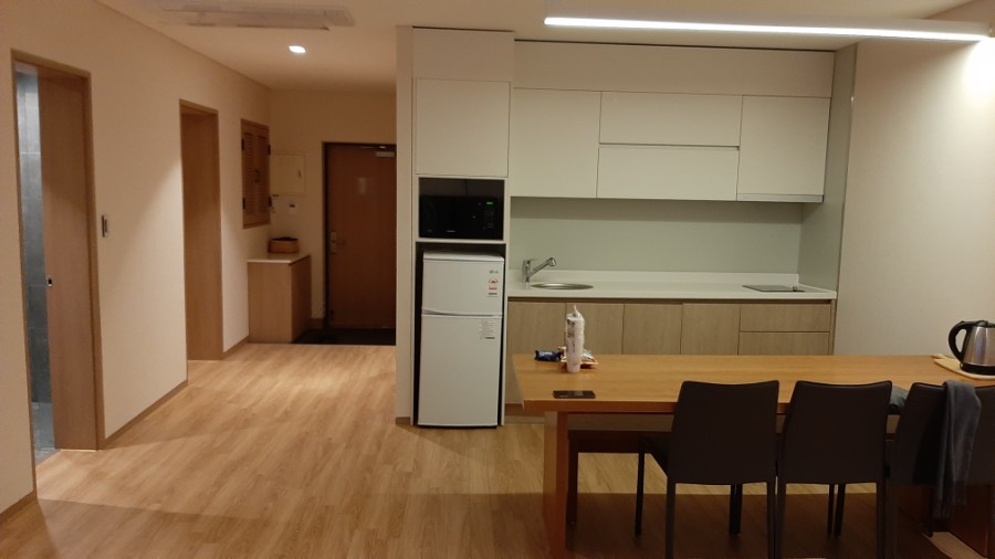 숙소는 거실 부엌에 침대방 1개와 온돌방 2개, 화장실/샤워실 2개씩이었습니다.