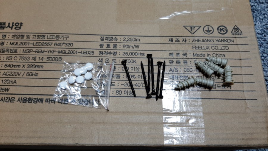 그리고 안에 등기구를 고정시킬 부속품들이 들어있고요.