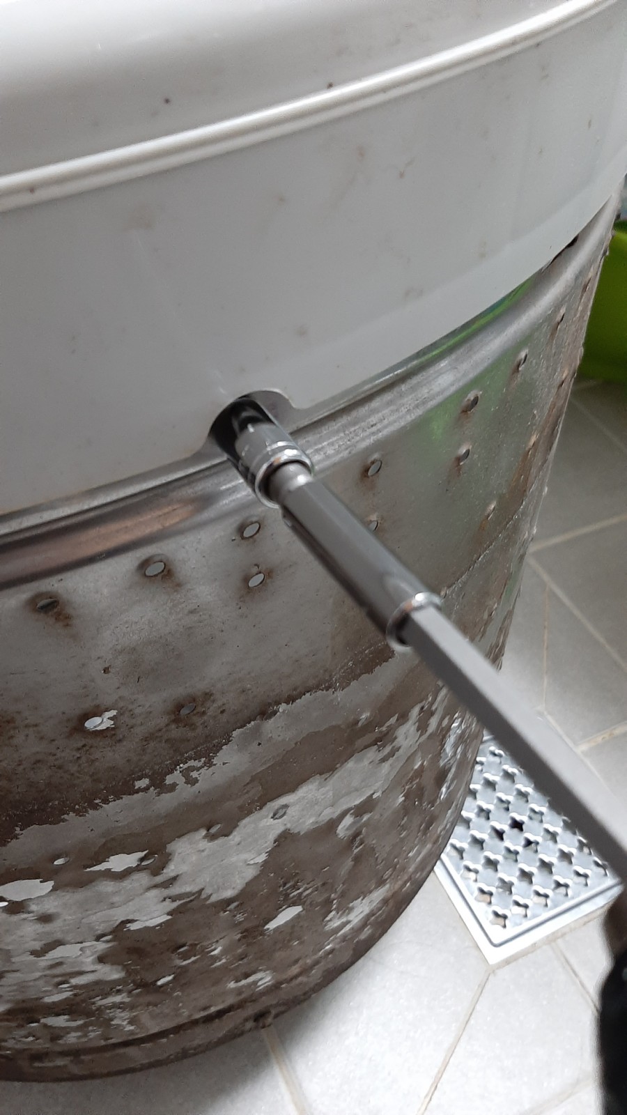 세탁조 윗부분을 보시면 볼트가 있습니다. 세탁조와 위의 물추를 분리하려면 도구가 있어야겠지요.