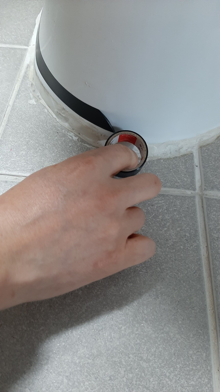 변기와 바닥에 마스킹테이프를 미리 붙여놓고 하세요.