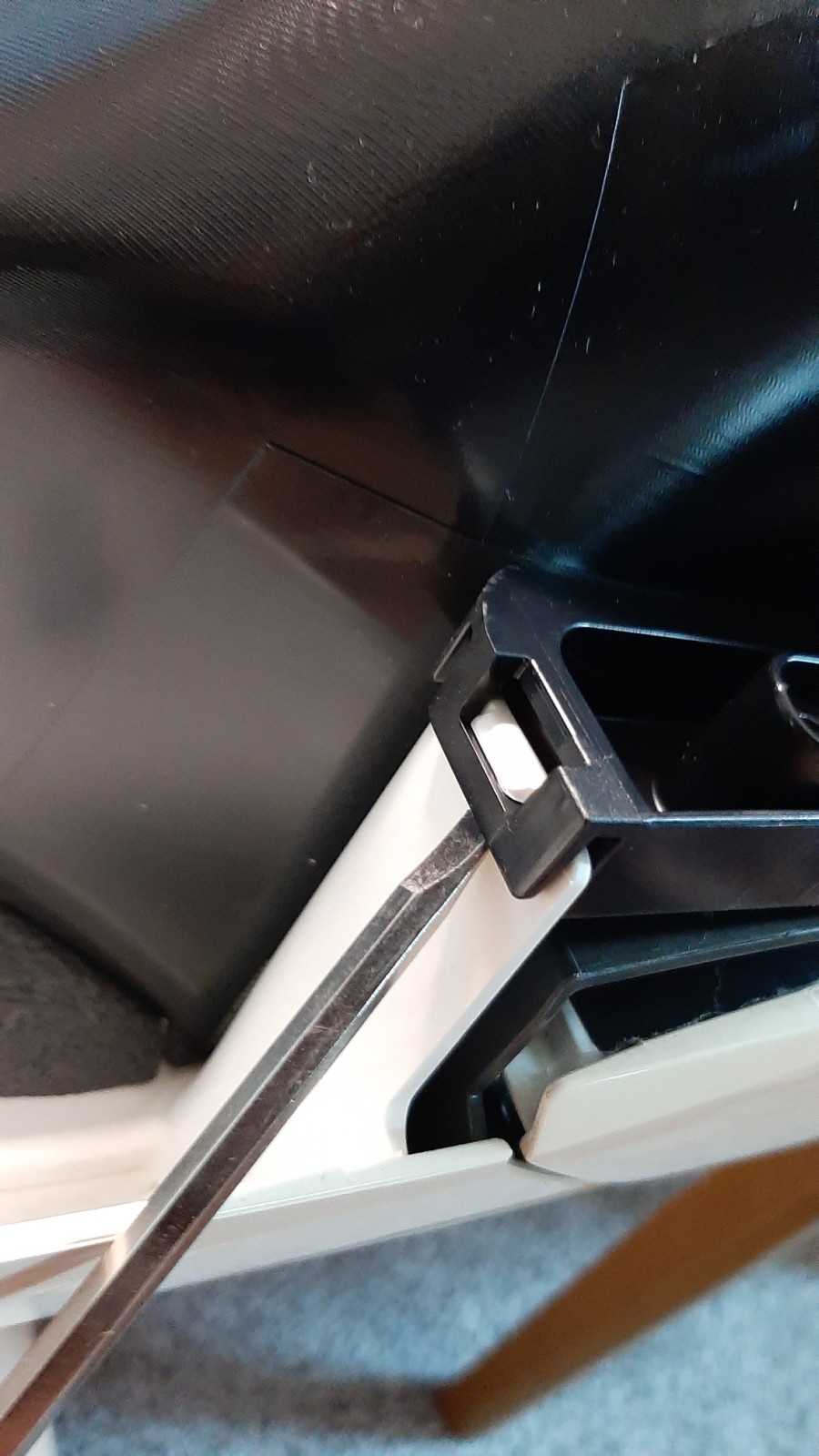전선이 연결되어 있기 때문에 조심해서 앞에 의자를 놓고 의자 위에 올려놓습니다.