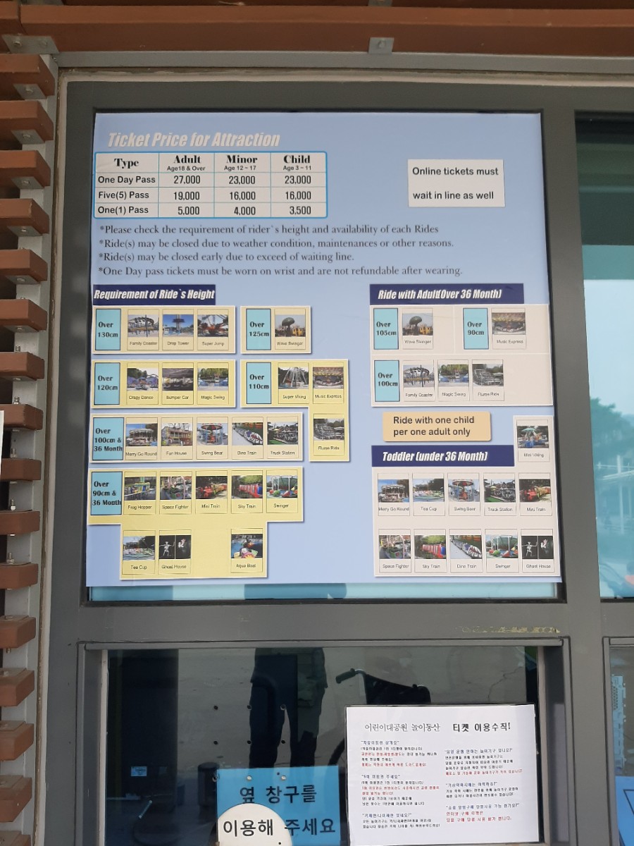 서울어린이대공원 놀이동산 유의사항입니다.