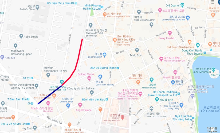 하노이 기찻길 마을 위치는 아래와 같습니다.