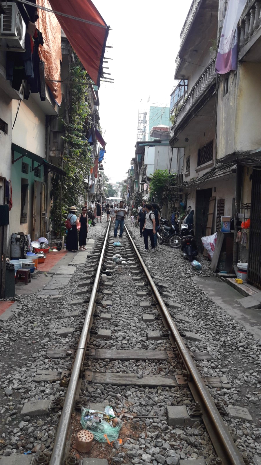 베트남 사람들이 실제로 기찻길 옆에서 생활하고 있다.