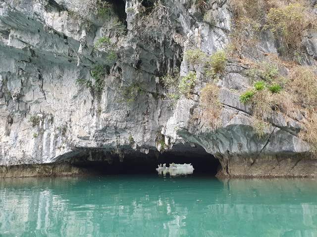 동굴이 보이고 배를 타고 동굴 안을 통과합니다.