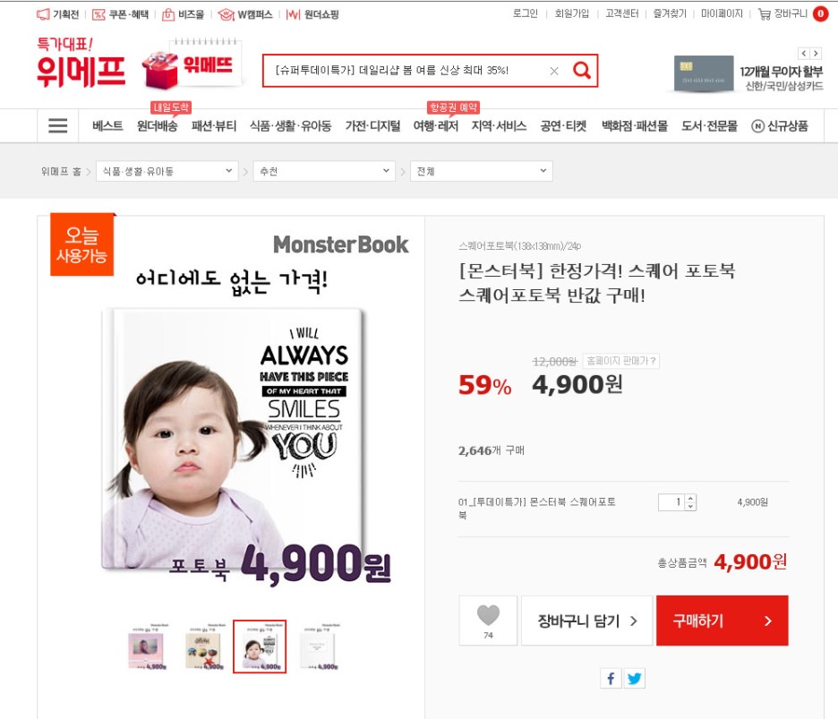 몬스터북은 포토북 할인 쿠폰을 판매하고 있더라고요.